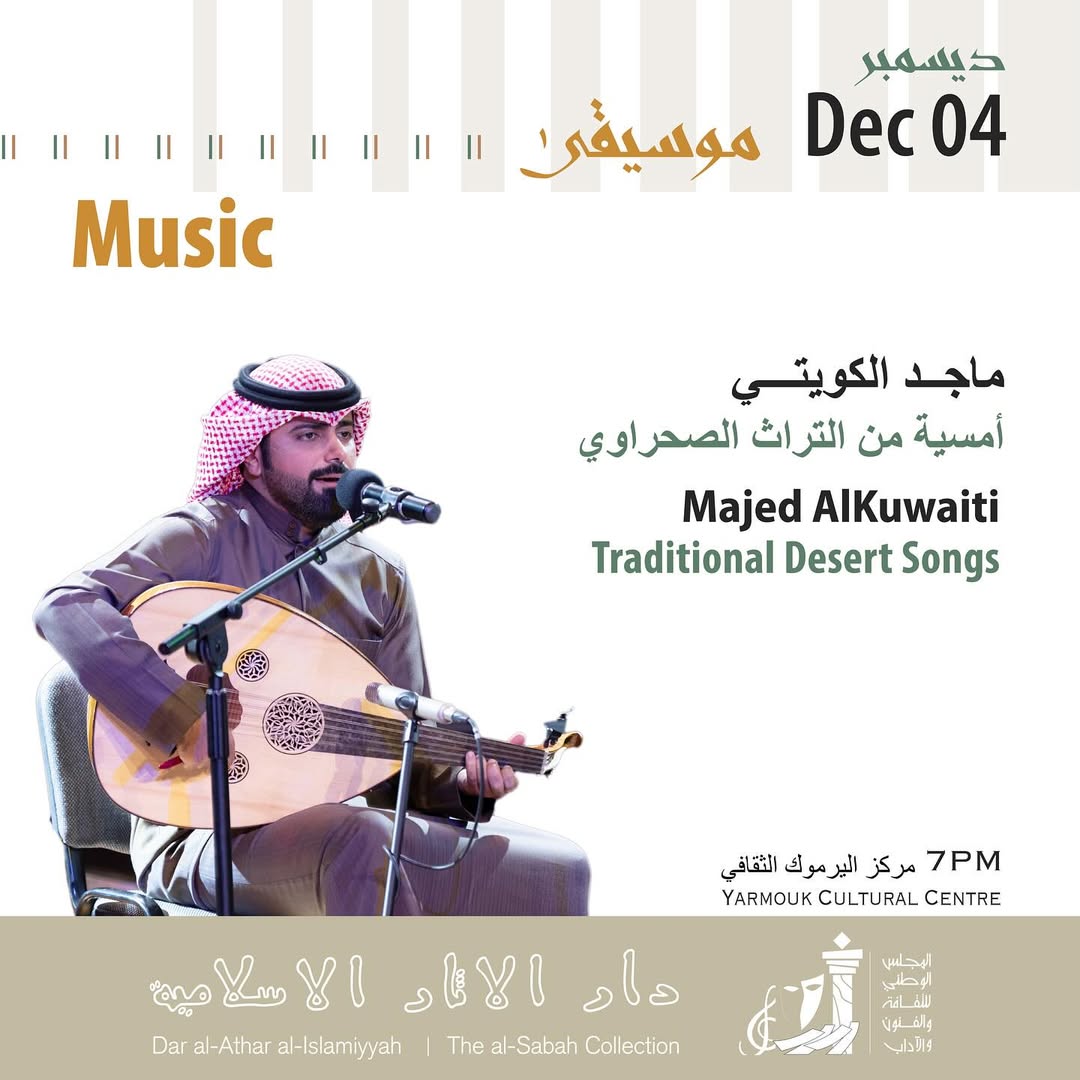 A musical night of, “Traditional Desert Songs” performed by Majed AlKuwaiti at the Yarmouk Cultural Centre.