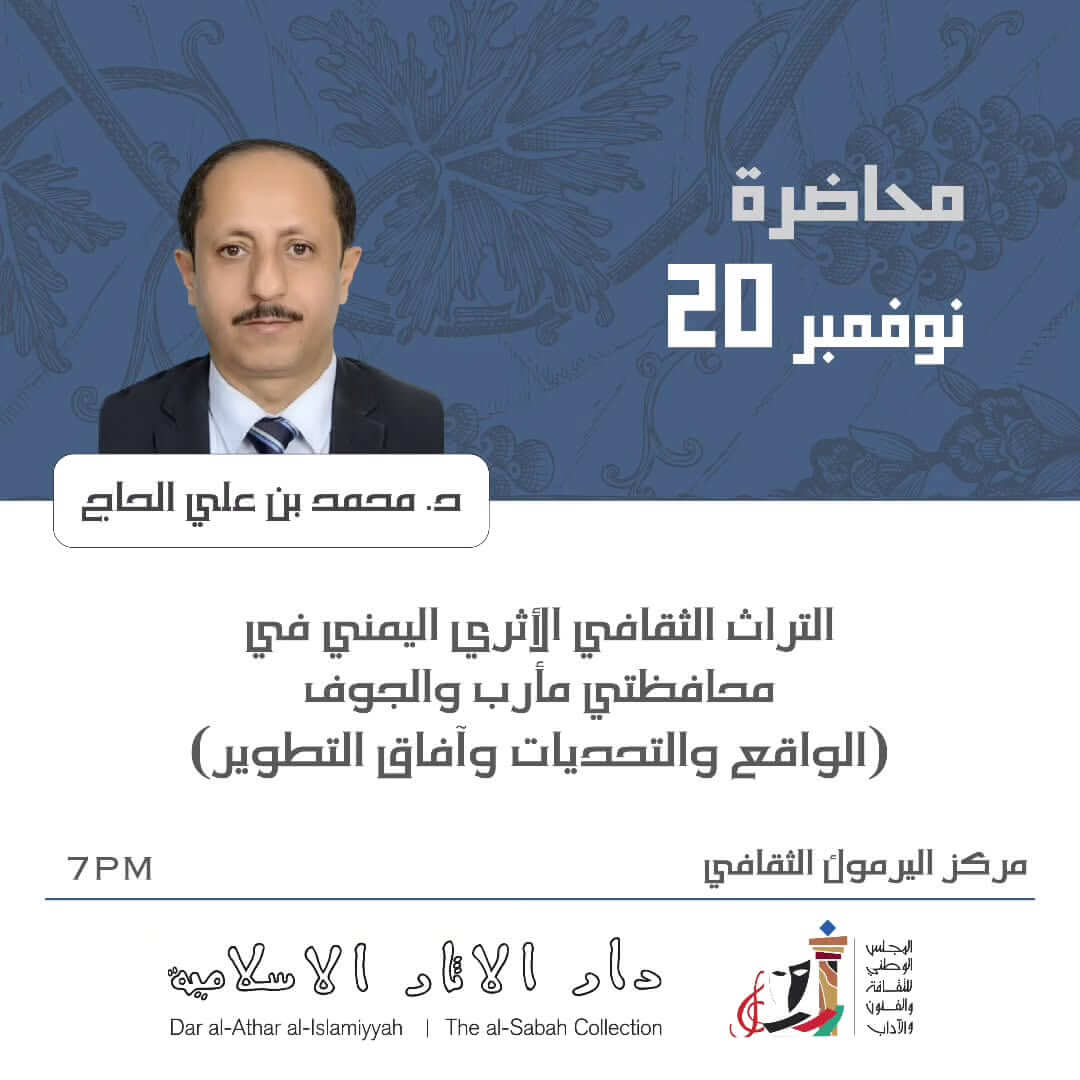 وهذه المحاضرة محاولة لتسليط الضوء على أهمية التراث الثقافي الأثري في محافظتي مأرب والجوف، تلكما المحافظتين اللتان يُمتلكان من الإرث الحضاريمالاتسعهأيمنطقٍةأخرىداخلاليمن،أوفيشبهالجزيرة العربية،لاحتضانهمالأهمالمعالمالأثريةوأقدمها،وهيأيًضامحاولة لكشف واقع التدمير الممنهج والواسع الذي يتعرض له ذلك التراث على أيدي أبناءه ممن جهلوا قيمته الفكرية والرمزية والثقافية، ًوعلموا قيمته المادية فقط، فعمدوا إلى طمسه وتدميره والمتاجرة به، فضلا عن مناقشة المقترحات التي من شأنها الإسهام في الحفاظ وتطوير التراث الثقافي الأثري