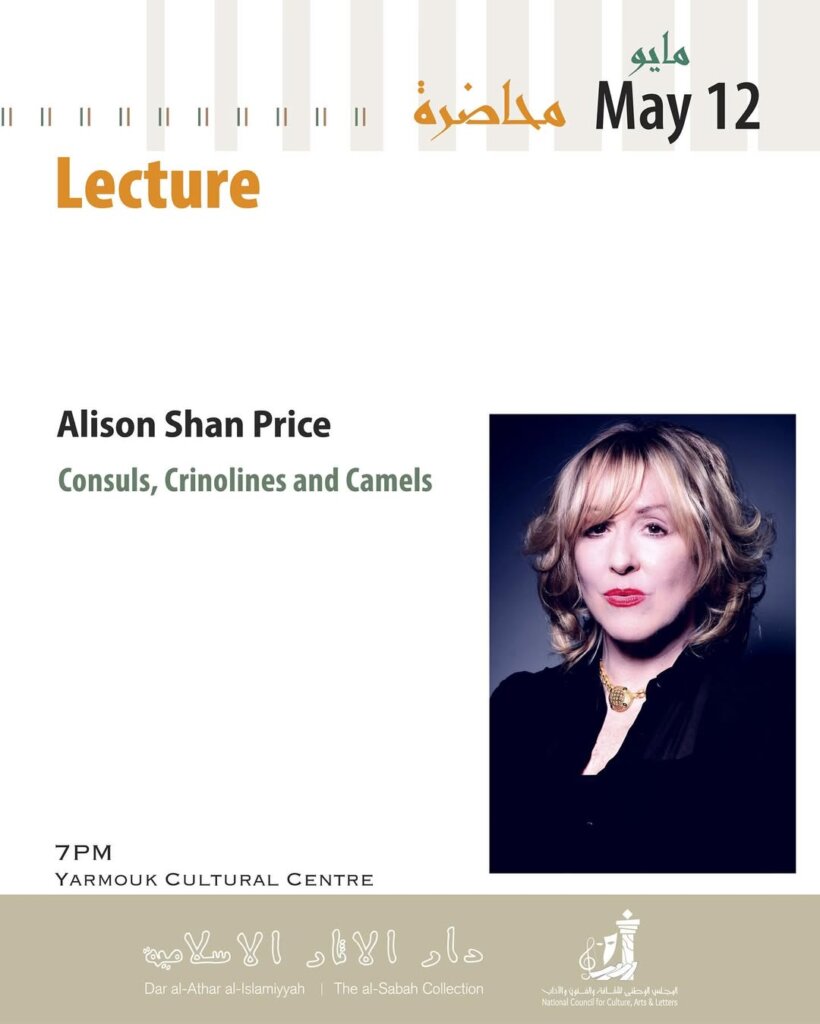 Alison Shan Price is a cultural historian and dramaturg who has researched and presented historical presentations in the form of lectures and performance. Her research on the cultural evolution of independent Western women travelling through the Middle East has been presented in at the Dar al-Athar al-Islamiyyah, the British Embassy of Kuwait, the British Academy (London), UK’s National Trust and the University of Oxford. In 2017, she received an MBE from Her Majesty Queen Elizabeth 11, and, in 2020, the Fellowship of the Royal Geographical Society