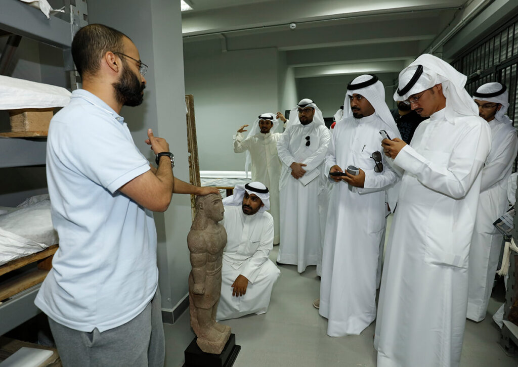 The Al-Sabah Collection had special guests this morning ..a group of graduate students from the History Department at Kuwait University, headed by Professor Abdulhadi al-Ajmi, toured the storage area where they were introduced to the rare manuscripts, woodwork, ceramics, metalwork from the collection. The tour was guided by the collection’s curator Mrs. Salam Kaoukji and the assistant curator Mr. Mutlaq al-Jareed. Thank you Prof. Al-Ajmi and the graduate students for your visit.