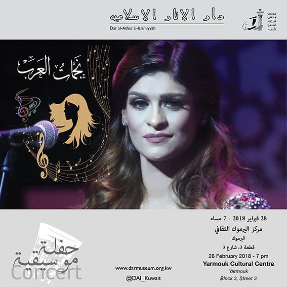 The concert will include music of Baleegh Hamdi, Muhammad Abdulwahab, Riyadh Alsenbati, and Ahmad Mishari Aladwani
