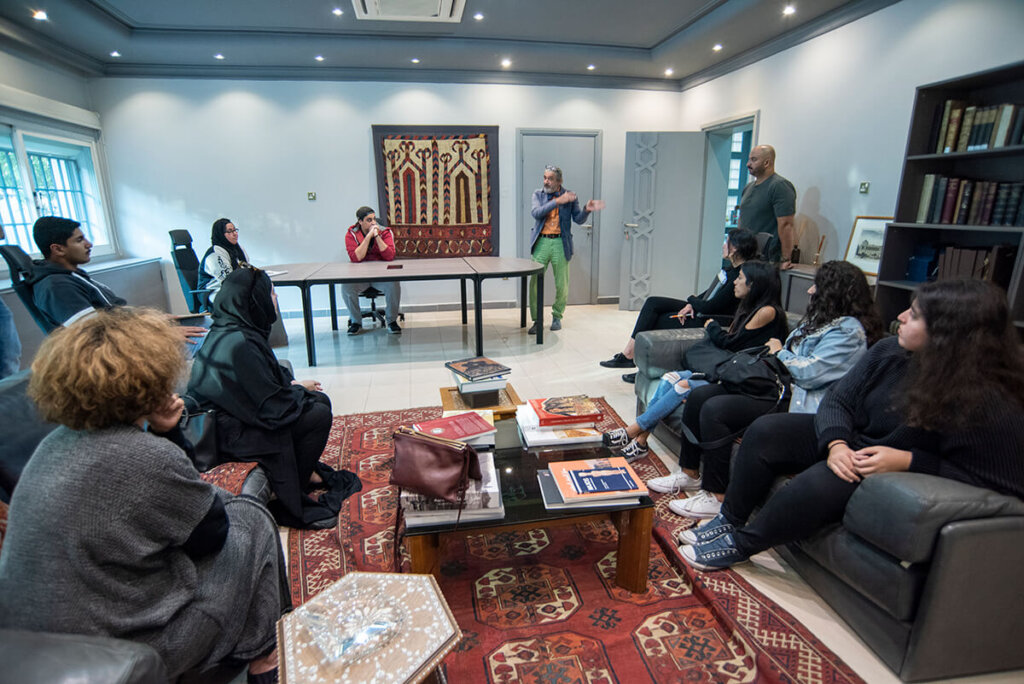 Dr Yasmin Saleh and students from the American University of Kuwait visiting The al-Sabah Collection at Yarmouk Cultural Centre