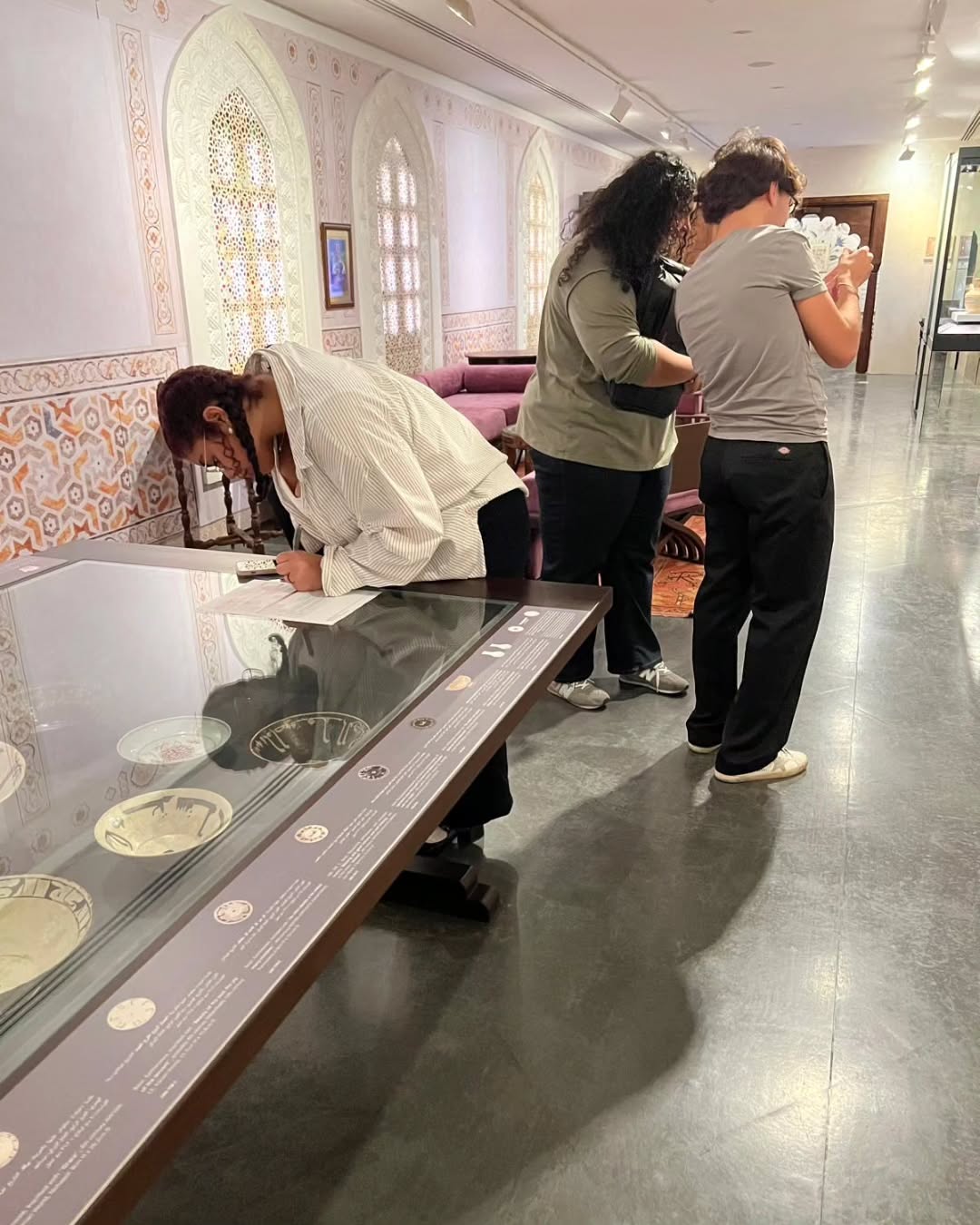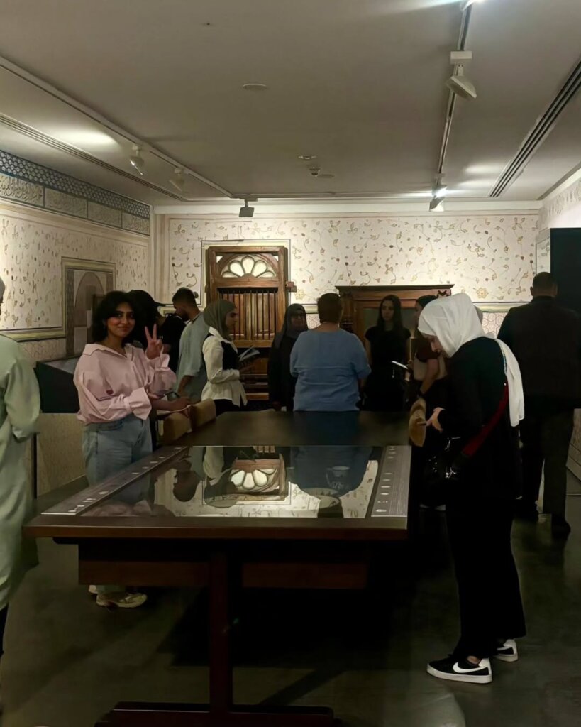 Two dozen students from American University Kuwait visited the DAI’s Amricani Cultural Centre on Wednesday. The students are participating in a new collaborative course that integrates art, design and museum studies. Over the semester, the students will study objects from The al-Sabah Collection presented in the “Home of Kind Words” exhibition. This will allow them to better understand the history and role of each object in the exhibition.